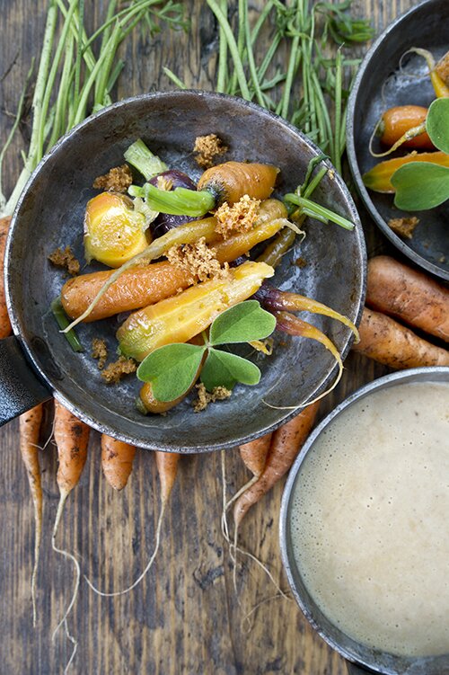 Wortel is gemakkelijk te telen en ik gebruik hem dan ook veelvuldig in de keuken. Dit is een van mijn favoriete recepten met wortel. Het gerecht geeft een lekker mondgevoel, vanwege de zachte wortel en de krokante kruidkoek. De specerijen in dit recept zijn de specerijen die voor kruidkoek worden gebruikt.
