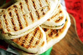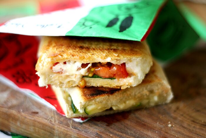 Het is datgene wat ik het liefst eet als ik in de laars ben: een platte met gesmolten kaas ertussen met van die mooie grilstreepjes. Een soort tosti, maar dan steviger.